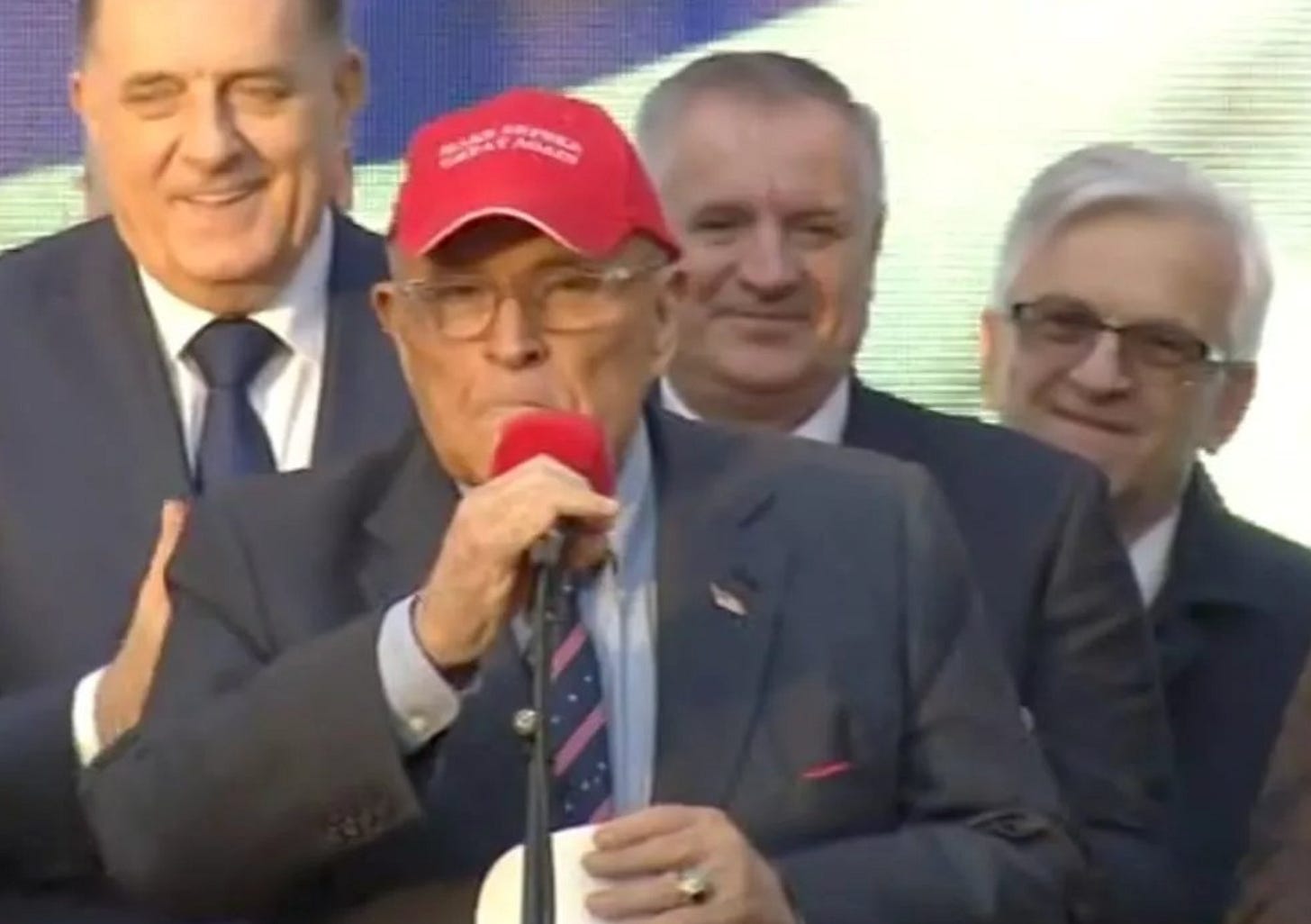 Dodik has also gained influence in the Trump White House: the US lifted sanctions on him and other Bosnian Serbs after lobbying by MAGA-linked figures including Laura Loomer, and Rudy Giuliani appeared at a rally in Banja Luka wearing a “Make Srpska Great Again” cap.