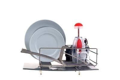 The Antopy Sink Dish Drying Rack is sturdy and can hold all styles of plates, but we worry about rust building up on the extendable arms. The cutlery holder is too small for large-handled items, and the drain holes have rough edges that are likely to get gunky.