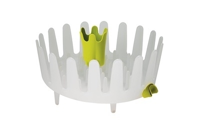 If you don’t have much room to spare on your countertop, but you still want a more traditional draining dish rack, get the Chef’n DishGarden. It’s just right for a two-person household and holds more than other racks of a similar size, owing to the wide prongs around its circumference.