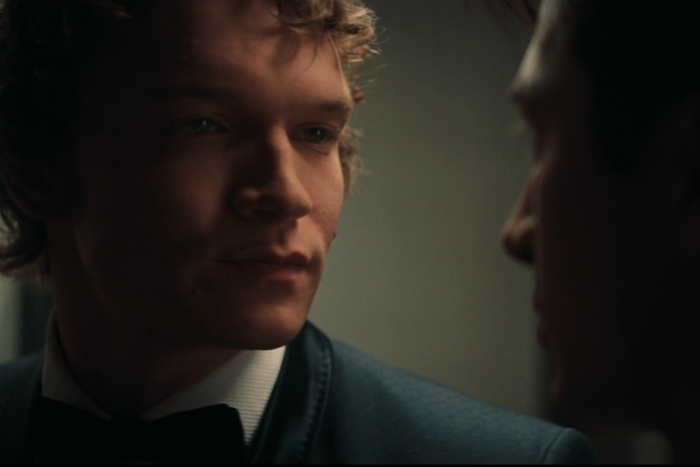 The final montage cuts between Shane and Ilya watching each other on the dance floor, Shane having sex with Rose, and Ilya alone in the shower. Parrell pushes the camera so close to Williams and Storrie’s eyelines that it nearly breaks the fourth wall. “If you’re going to do that, you have to mean it,” he says. He wanted the moment to feel like a rupture — “like something went off” — and timed a strobing flash to hit at the emotional peak. The rest came down to the cuts. “It was important for them to feel really intentional and close,” he says. “You’re always trying to connect Shane and Ilya in those moments, to build that yearning between them.”