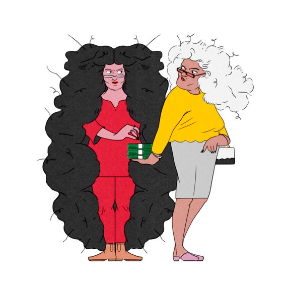 She uses cash my grandmother left her when she died — literally old $100 bills. So I’ll pay for it on my credit card — it’s about $700 because I’ll sneak in some color, too — then I’ll tell my mom, “I got keratin this month.” And she’s like, “Next time I see you, I’ll give you the cash. Don’t tell your father.”