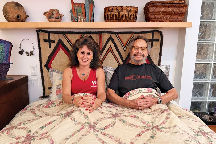 Other younger partners talked about the comfort, stability, and wisdom an older partner could provide. Tom Delavan, 60, an interior designer and the design editor of T magazine, recently married Max Ries, 33. They met at a yoga class in the Village when Ries was 24. “I never want you to miss out on something,” Delavan told Ries the other day. They were lounging on a plush white carpet in the living room of their apartment in the West Village. Delavan has lived there since the late ’90s. Ries already had some things figured out when they met: He had a job in corporate finance; he was in therapy. Still, Delavan said, “I ask Max sometimes, because my life is all set up in a certain way, ‘Is our life giving you what you want? Do you want to be doing this differently?’” Ries sipped his wine and tucked his feet under Delavan’s legs. When they first started getting serious, he recalled asking Delavan if he wanted to have kids: “I was like, ‘I don’t even want to go another day if that’s not a possibility.’” Delavan said he was open but suggested they wait until Ries was a bit older. “I was so intense about it at 24. Now, I’m 33. I don’t want kids right now. He’s been supportive no matter what,” Ries said. A year and a half after they began dating, he started an event-production company: “Imagine being young and then having such a lovely support system behind you while you’re building a business. He’s given me guidance all along the way over the last ten years.”